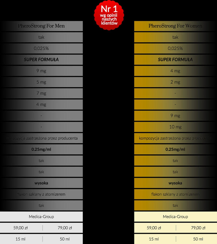 Rezultatele cercetărilor efectuate asupra feromonilor sugerează că ne putem controla sexualitatea și comportamentele legate de aceasta. Feromonii PheroStrong vă vor ajuta să vă creșteți succesul cu sexul opus. Îți vor permite să spargi bariera timidității și să crești șansele de a flirta. Te vor ajuta să fii o persoană deschisă, încrezătoare și sociabilă. Feromonii sunt folosiți pentru a crește atractivitatea erotică și chiar pentru a trata tulburările de dorință și excitare sexuală - notează profesorul Zbigniew Lew-Starowicz.