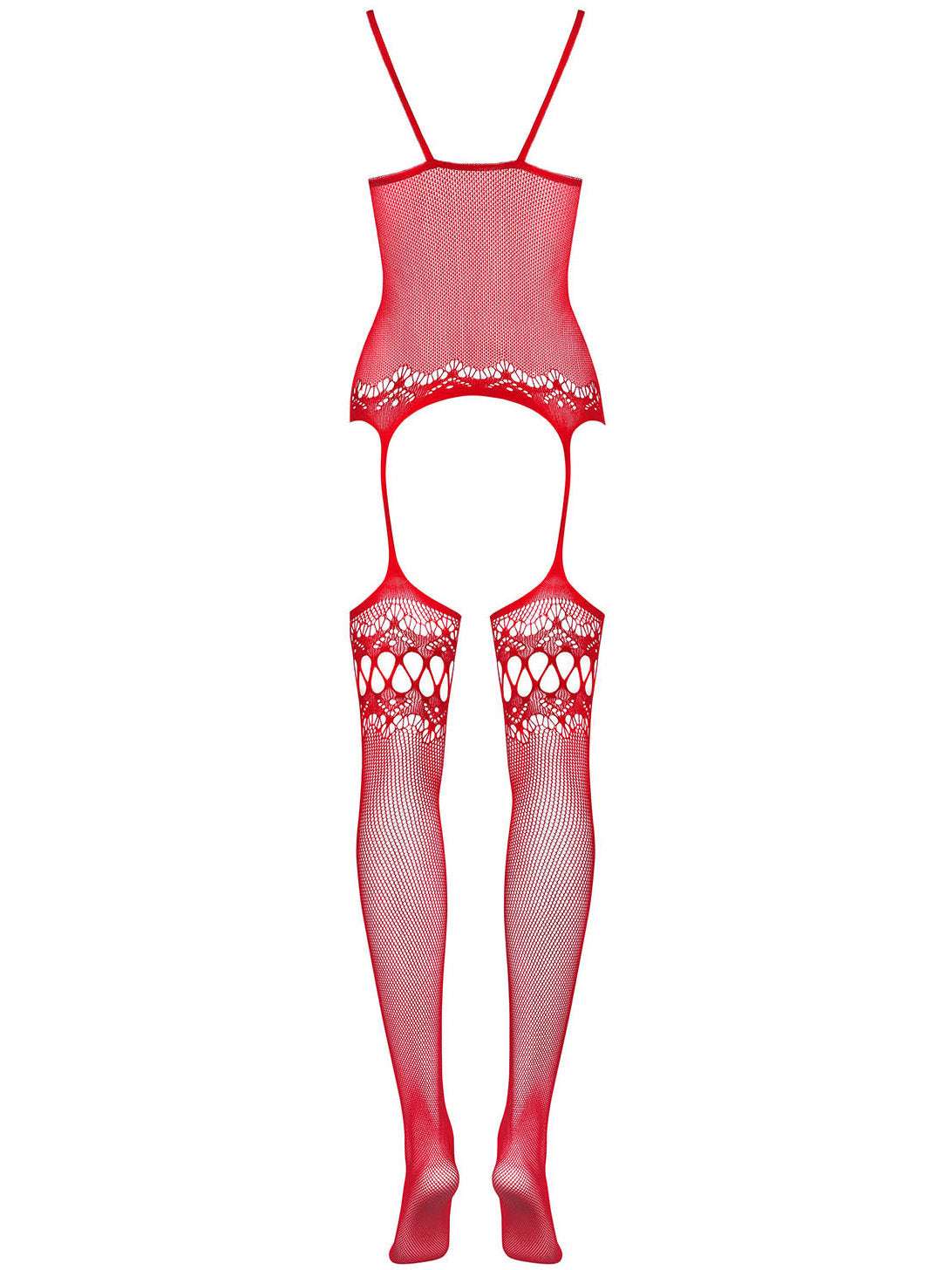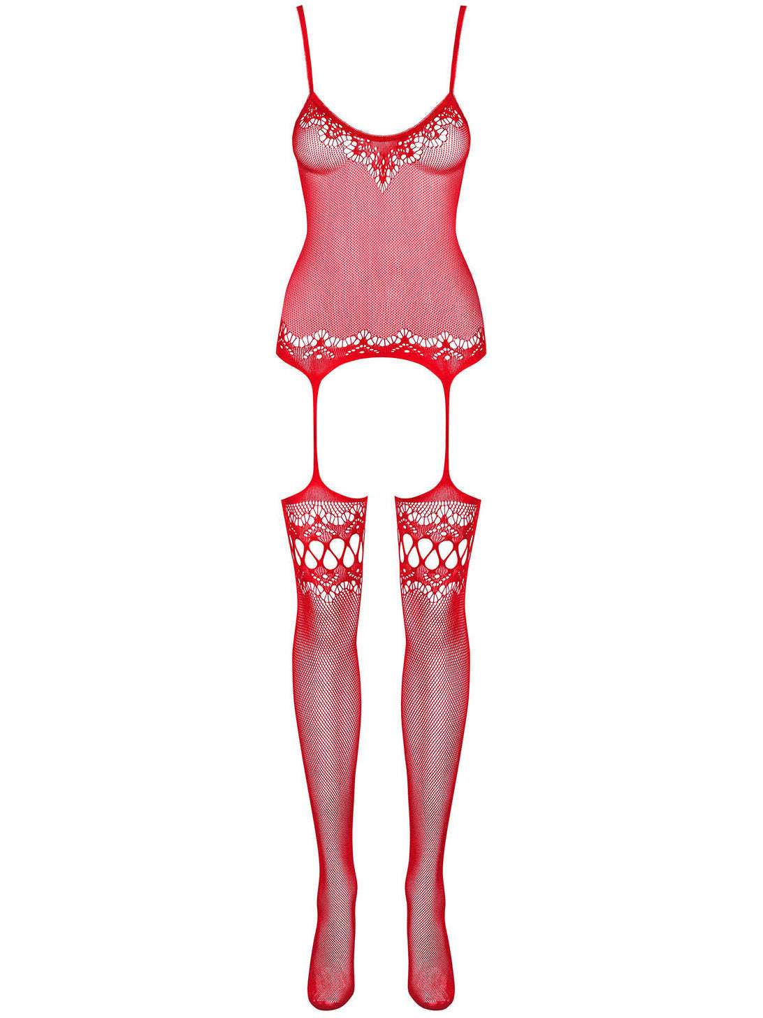 Bodystocking Obsessive F214 - lenjerie erotică din plasă cu portjartier și decupaje S/M/L, roșu