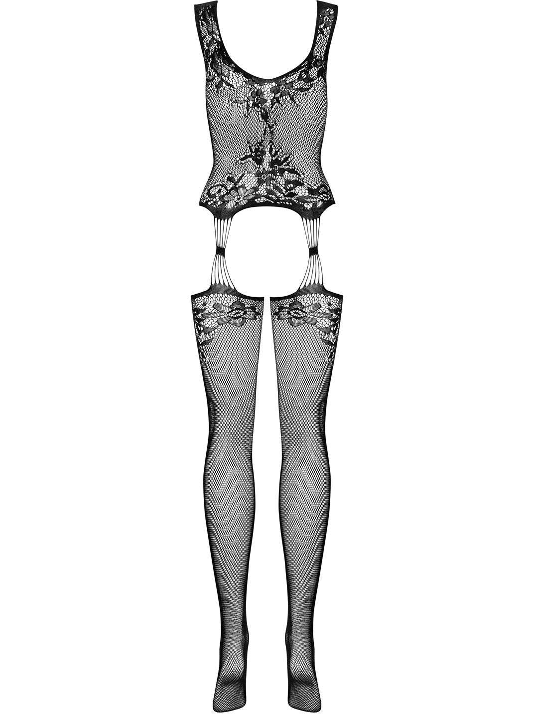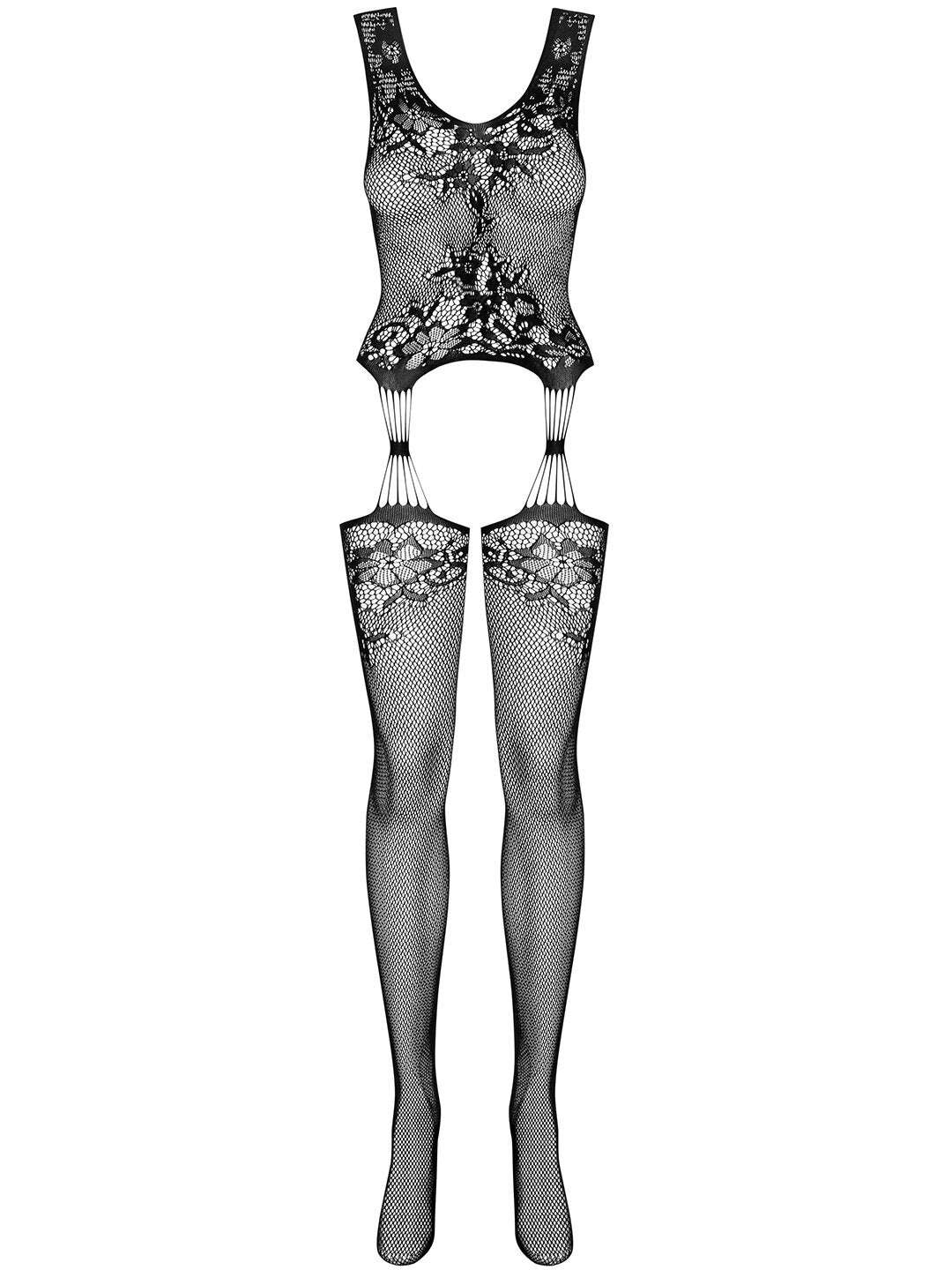 Bodystocking Obsessive F221 - lenjerie erotică din plasă cu portjartier și decupaje XL/XXL, negru