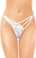 Chiloti tanga albi din dantela fina, cu design sexy si bretele elastice laterale, ideali pentru momente speciale si outfituri provocatoare.