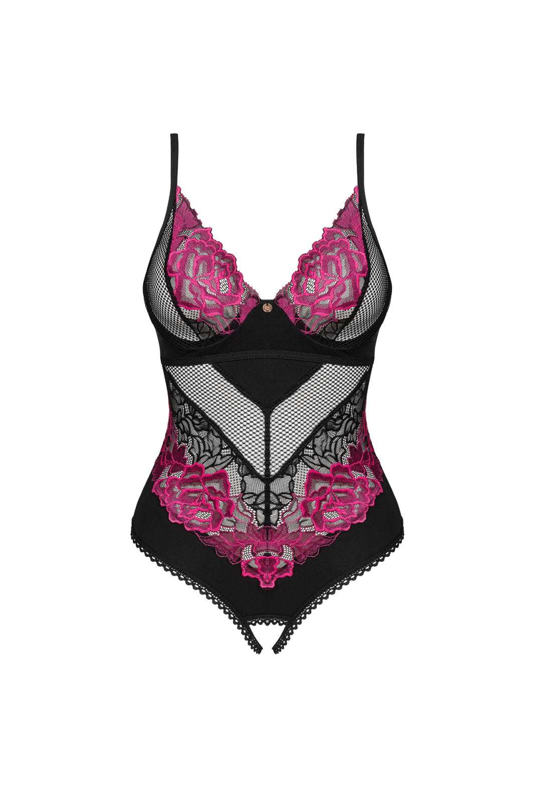 Body Rosenty – lenjerie erotică din dantelă fină și detalii seducătoare XS/S, negru cu roz