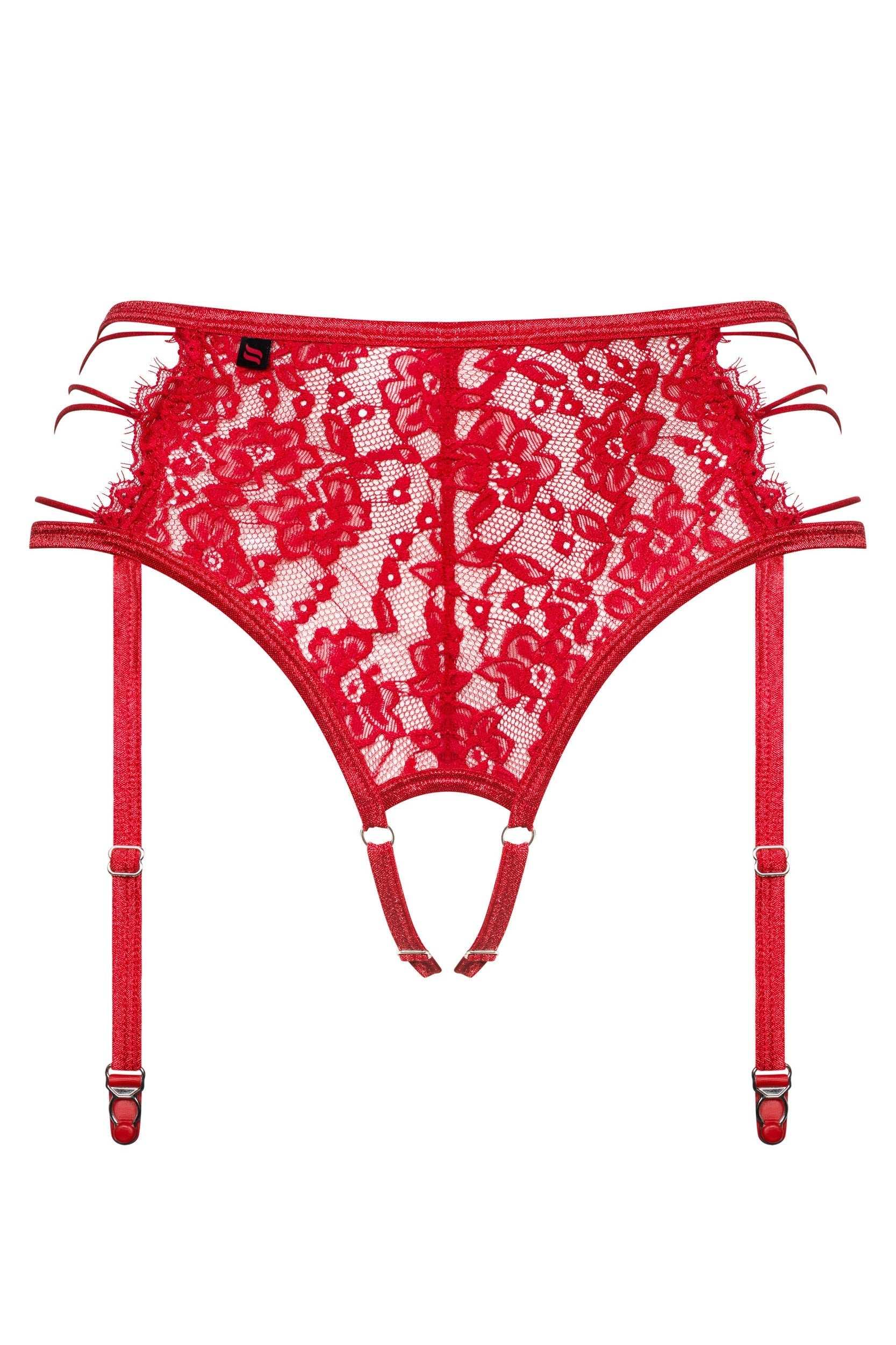 Chiloti cu portjartier Rediosa – tanga sexy din dantelă cu accesoriu și decupaje provocatoare, roșu