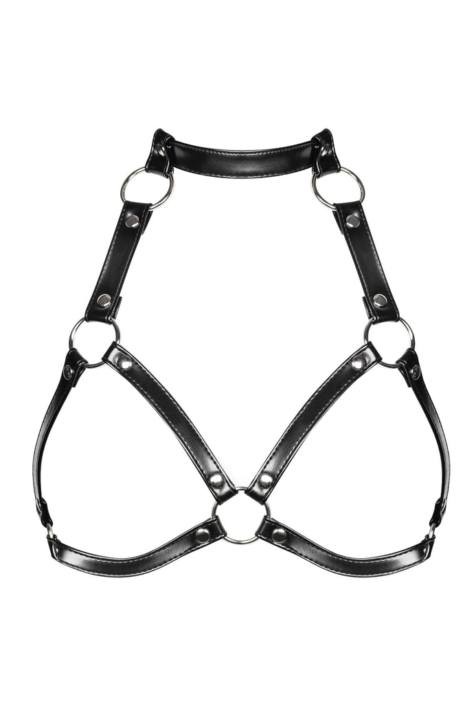 Accesoriu erotic Spicy Harness A740 Obsessive – ham provocator din vinil cu bretele reglabile si insertii metalice One Size (marime universala), negru