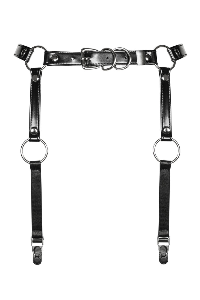Accesoriu erotic Harness Garter Belt A741 - portjartier provocator din vinil cu bretele reglabile si insertii metalice One Size (marime universala), negru