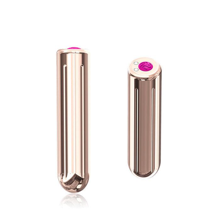 Vibrator clitoris Bullet Rock cu 9 moduri de vibratii si incarcare USB, 9 cm, auriu rose